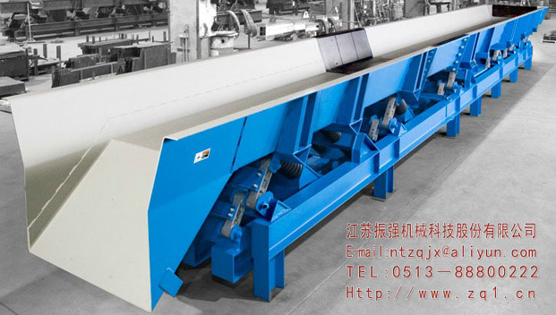 振動(dòng)輸送機(jī)是一種無牽引構(gòu)件的連續(xù)輸送機(jī)械。它是利用機(jī)械共振原理來輸送物料的。振動(dòng)輸送機(jī)主要由承載構(gòu)件、彈性元件及激振器等組成。激振器足振動(dòng)輸送機(jī)的驅(qū)動(dòng)機(jī)構(gòu)動(dòng)力源,用以產(chǎn)生激振力,使承載槽產(chǎn)生持續(xù)的振動(dòng)。激振力的大小直接影響著承載的振幅,其交變頻率即為輸送機(jī)的工作頻率。承載體為槽形或管形振動(dòng)料槽,在振動(dòng)過程中,將能量傳給物料,使之沿輸送方向作連續(xù)拋擲運(yùn)動(dòng)。承載體為參振質(zhì)體,需具有足夠的剛度和強(qiáng)度。減振支承裝置既是整機(jī)的支承裝置,又作減振用。