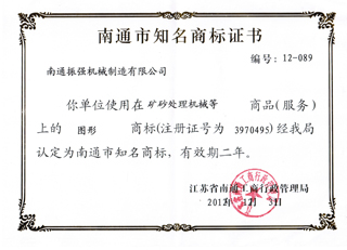 江蘇振強機械科技股份有限公司 >> 公司簡介 >> 資質(zhì)證書 >> 南通市知名商標證書