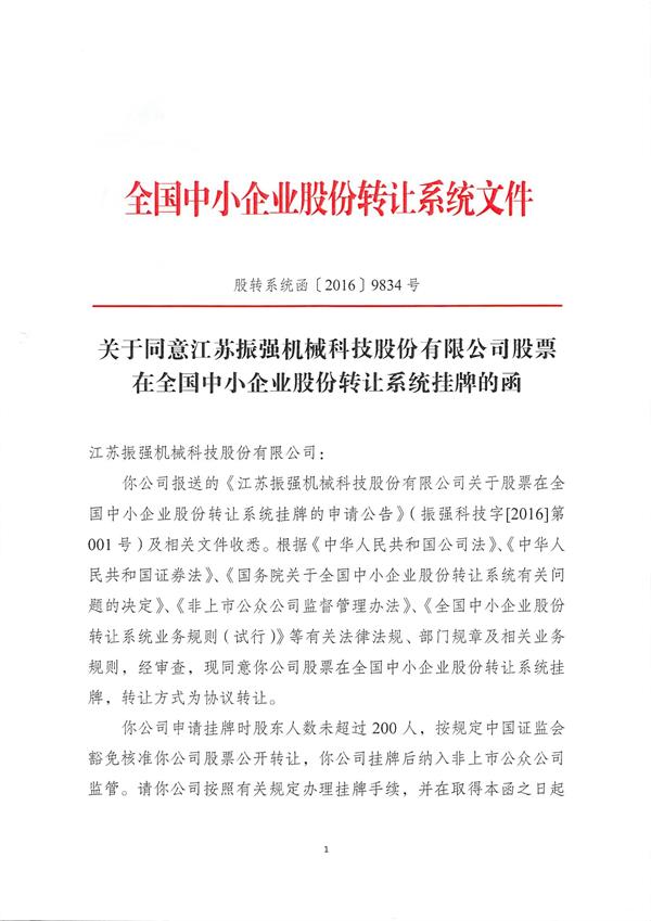 江蘇振強(qiáng)機(jī)械科技股份有限公司 >> 公司簡介 >> 資質(zhì)證書 >> 允許振強(qiáng)股份掛牌