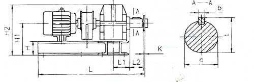 | 驅(qū)動(dòng)裝置 | 電動(dòng)機(jī) | 減速器 型 號(hào) | A | B | C | D | E | n-d1 | H | H1 | H1 | K | L | L1 | L2 | B1 | B2 | b | t | d | 重量 kg | |