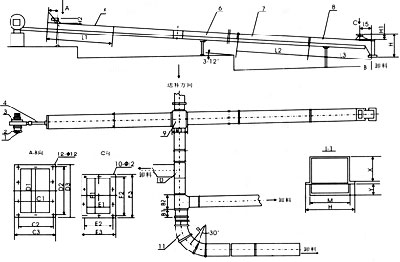 空氣斜槽輸送機由數(shù)個薄鋼制成的槽子聯(lián)接組成,并沿其輸送方向布置成一定的斜度。空氣輸送斜槽槽體沿著輸送方向安裝成向下傾斜4%~6%的斜度。