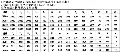 空氣輸送斜槽主要組成零部件有:進(jìn)料溜管、直槽體、槽架、窺視窗、出料溜管。